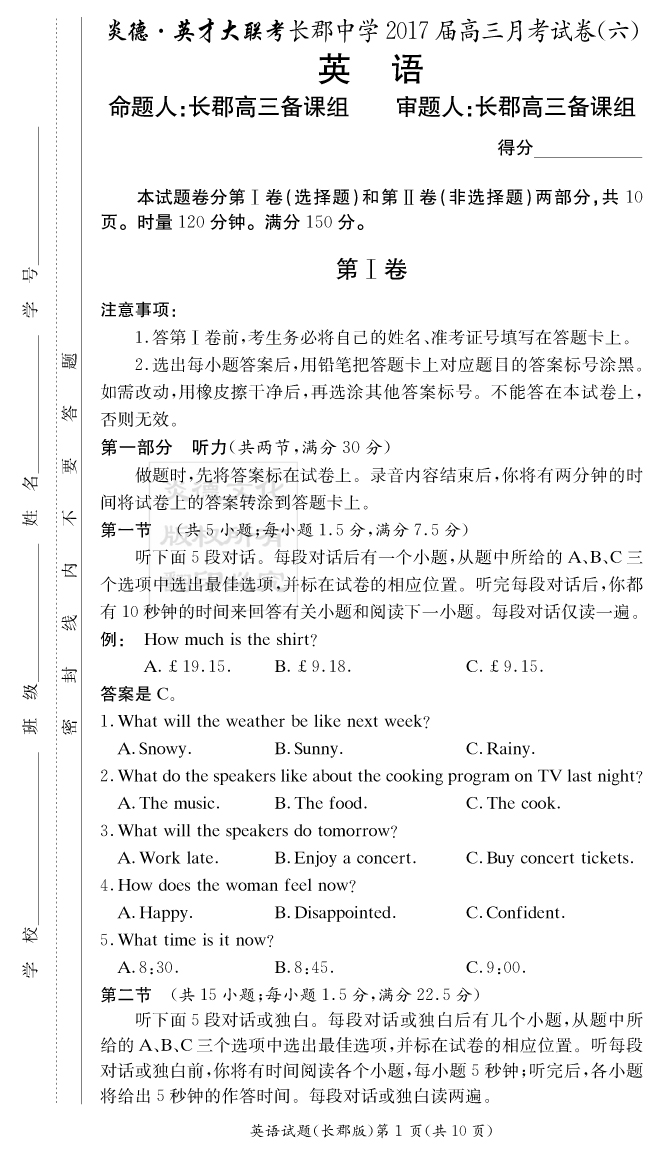 資源類別: | 名校月考 | |
