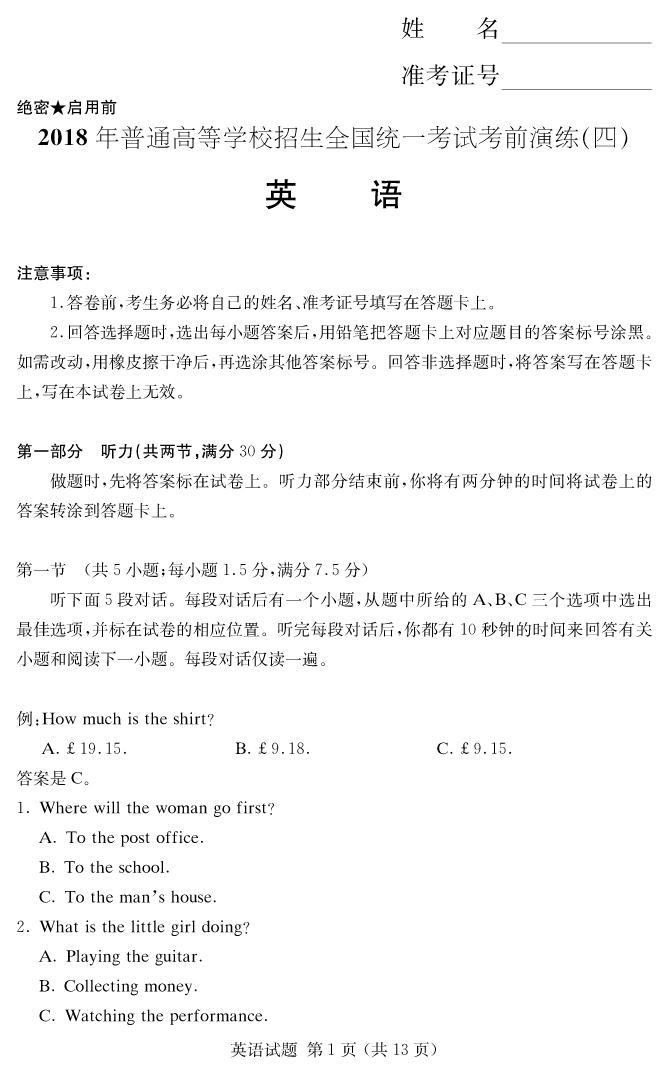 下一篇:【語文】2018年普通高等學校招生全國統(tǒng)一考試考前演練(四)
