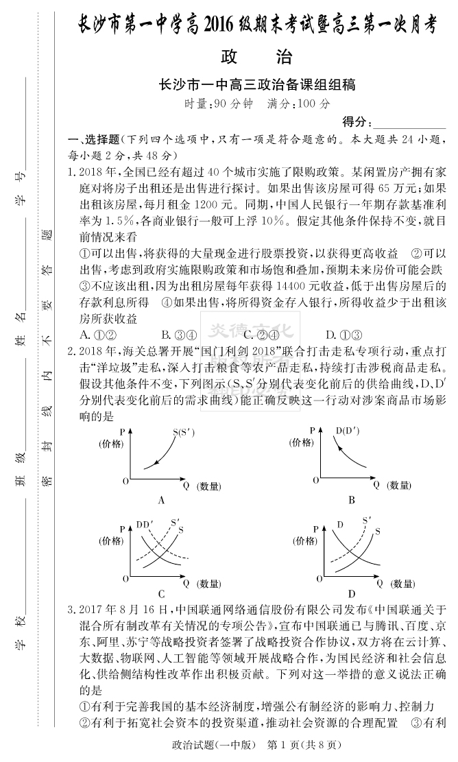 2025長郡中學新高考考前小題沖刺訓練·政治