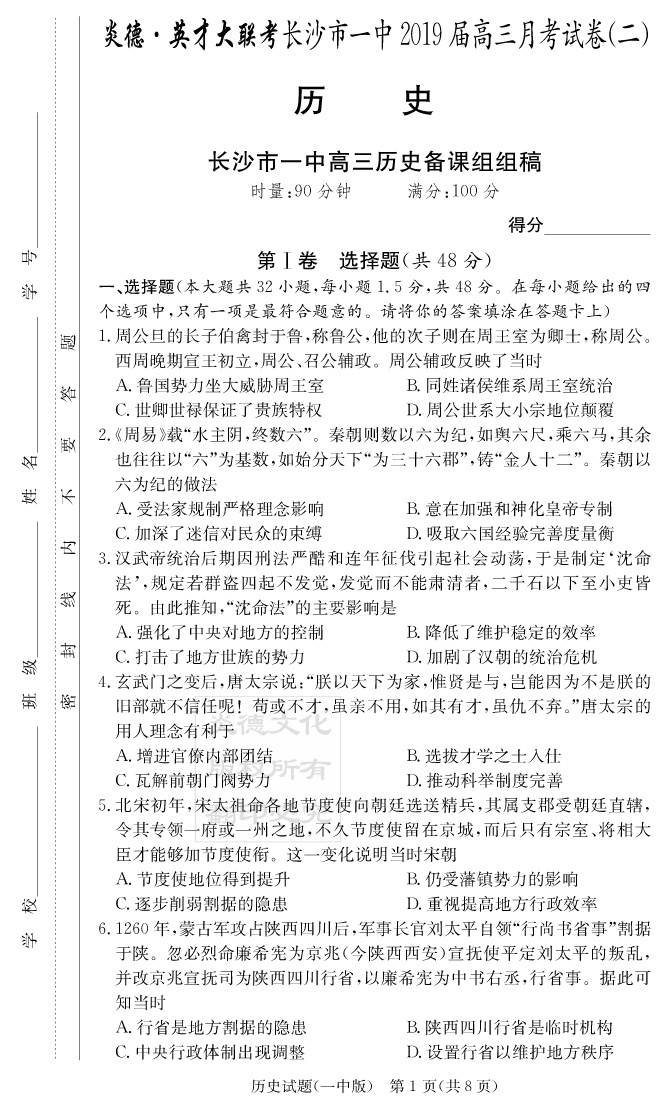 2025長郡中學新高考考前小題沖刺訓練·歷史