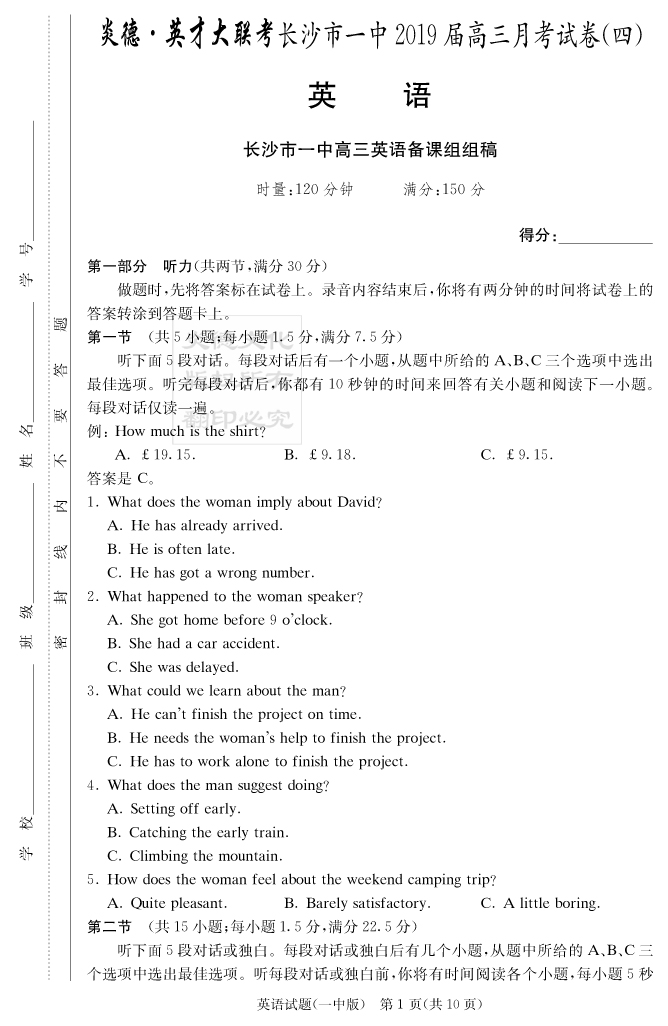 上一篇:【物理】炎德英才大聯(lián)考2019長沙一中高三4次月考
