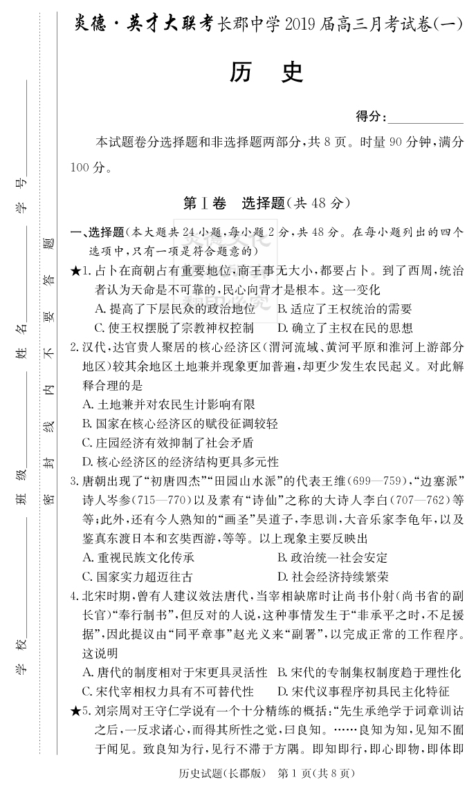 2025長郡中學新高考考前小題沖刺訓練·歷史