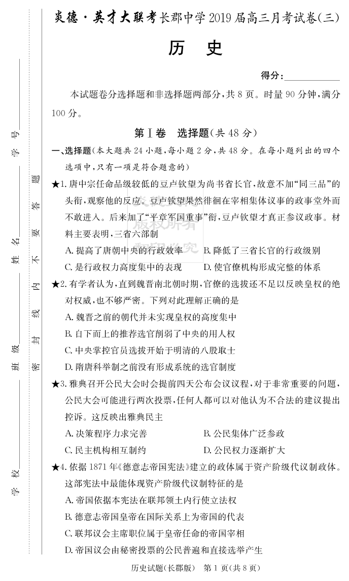 2025長郡中學新高考考前小題沖刺訓練·歷史