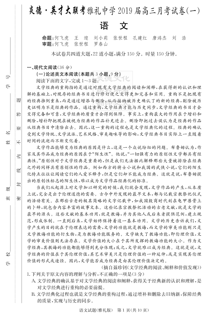 上一篇:【英語】炎德英才大聯(lián)考2019雅禮中學高三1次月考