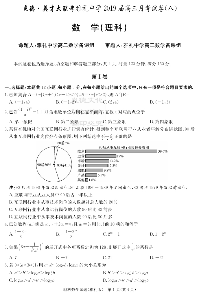 【理數(shù)】炎德英才大聯(lián)考2019雅禮中學(xué)高三8次月考