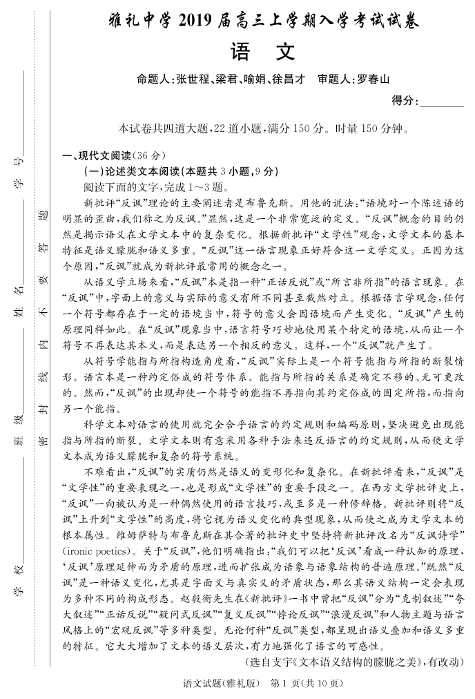 資源類別: | 名校月考 | |