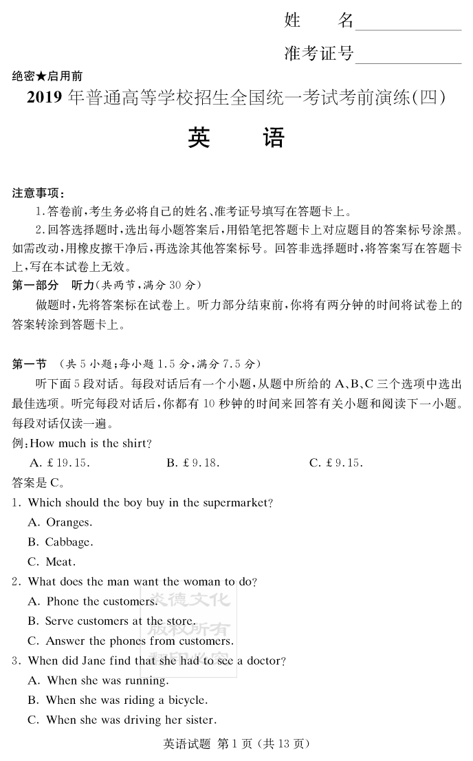 下一篇:【語文】2019年普通高等學校招生全國統(tǒng)一考試考前演練(四)