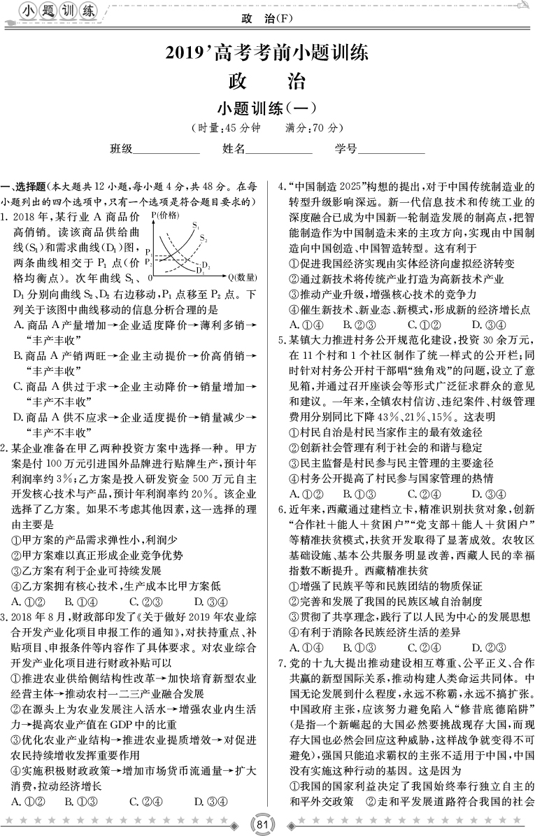 2025湖南師大附中新高考考前小題訓練·政治