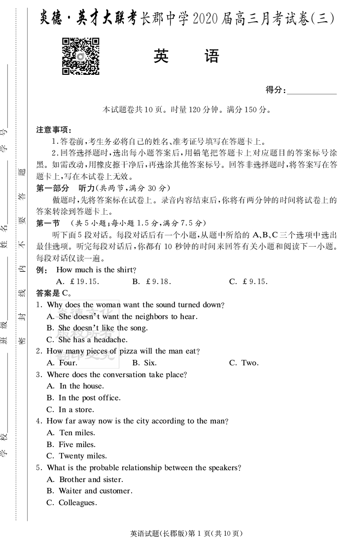 資源類別: | 名校月考 | |