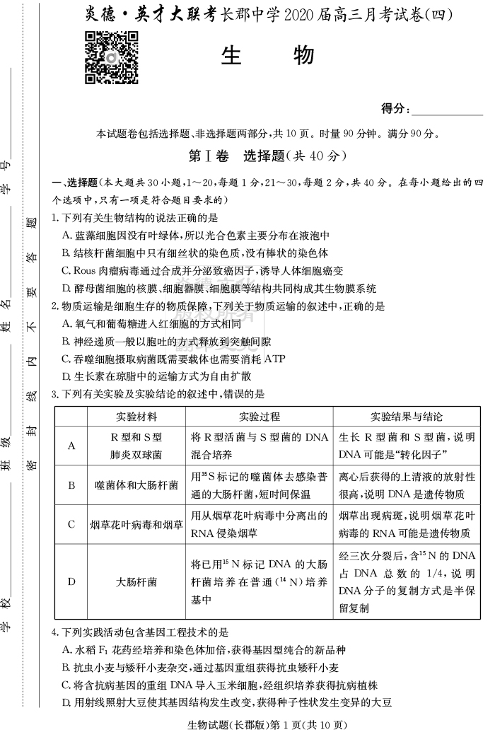2025長郡中學新高考考前小題沖刺訓練·生物