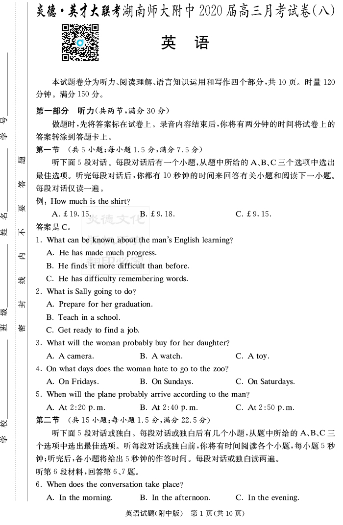 下一篇:【語文】炎德英才大聯(lián)考2020屆師大附中高三8次月考