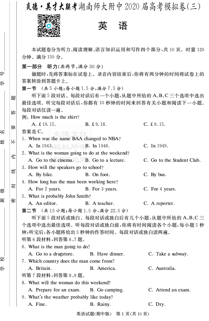 下一篇:【語文】炎德英才大聯(lián)考2020屆師大附中高三10次月考(模擬三)