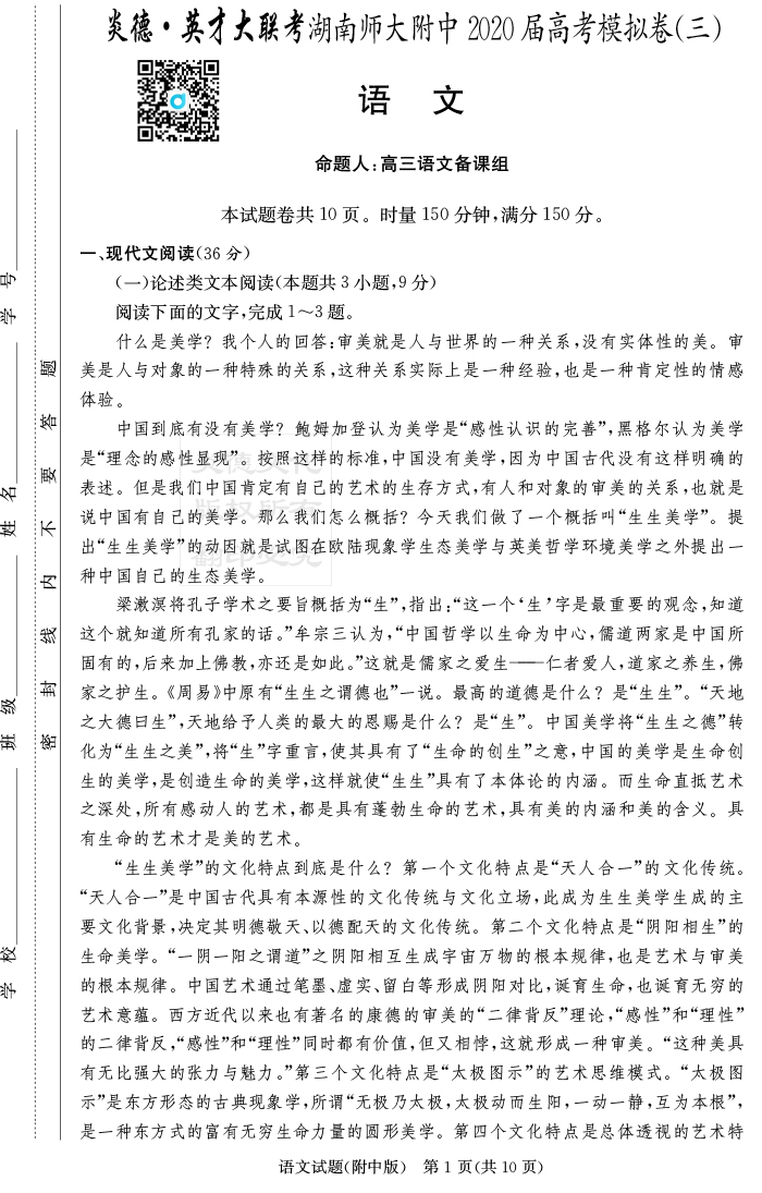 2025湖南師大附中新高考考前小題訓練·語文