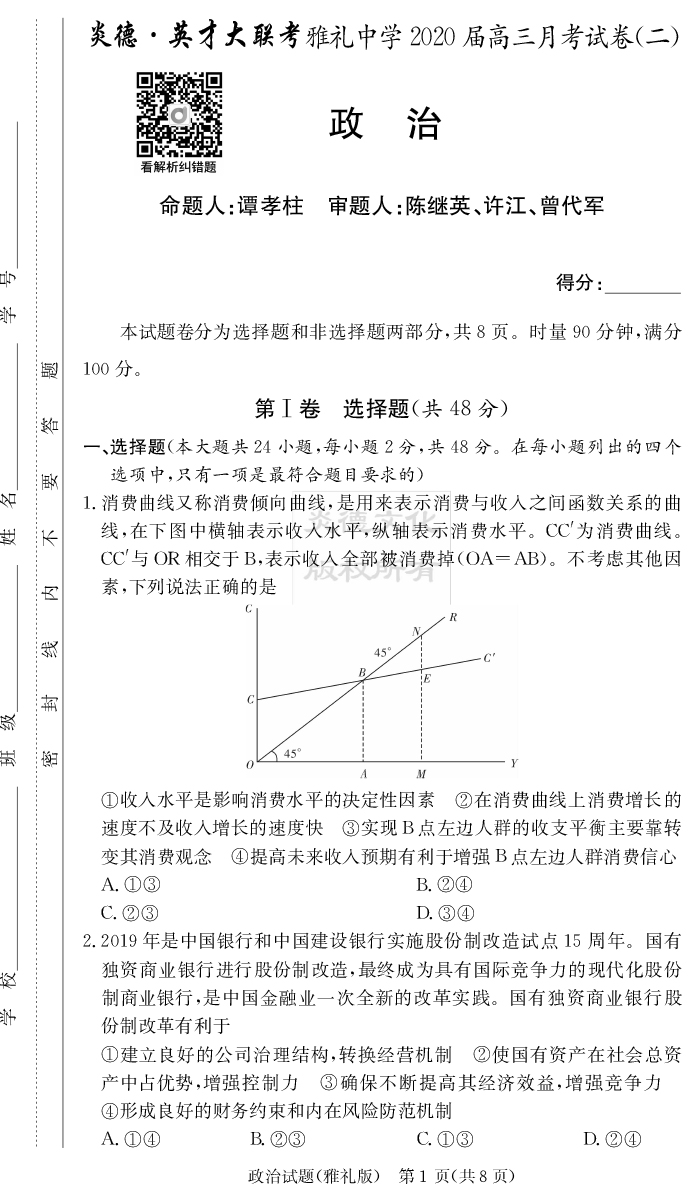2025長郡中學新高考考前小題沖刺訓練·政治