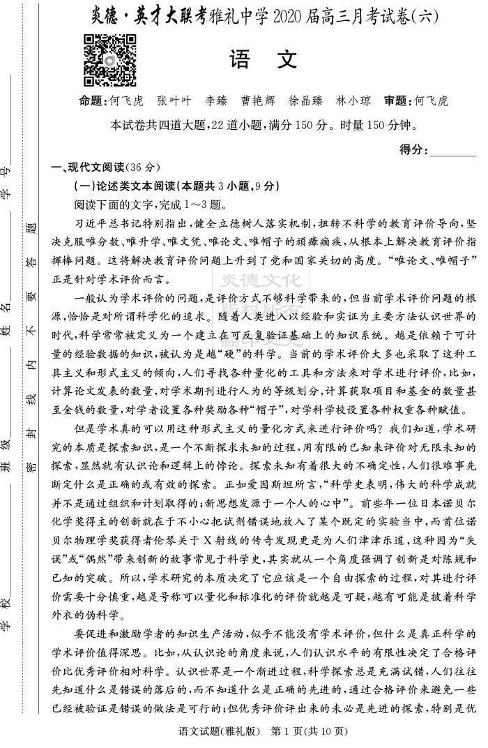 上一篇:【英語】炎德英才大聯(lián)考2020屆雅禮中學高三6次月考