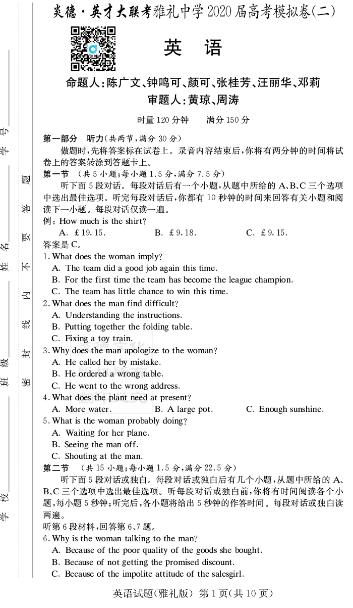 資源類別: | 名校月考 | |