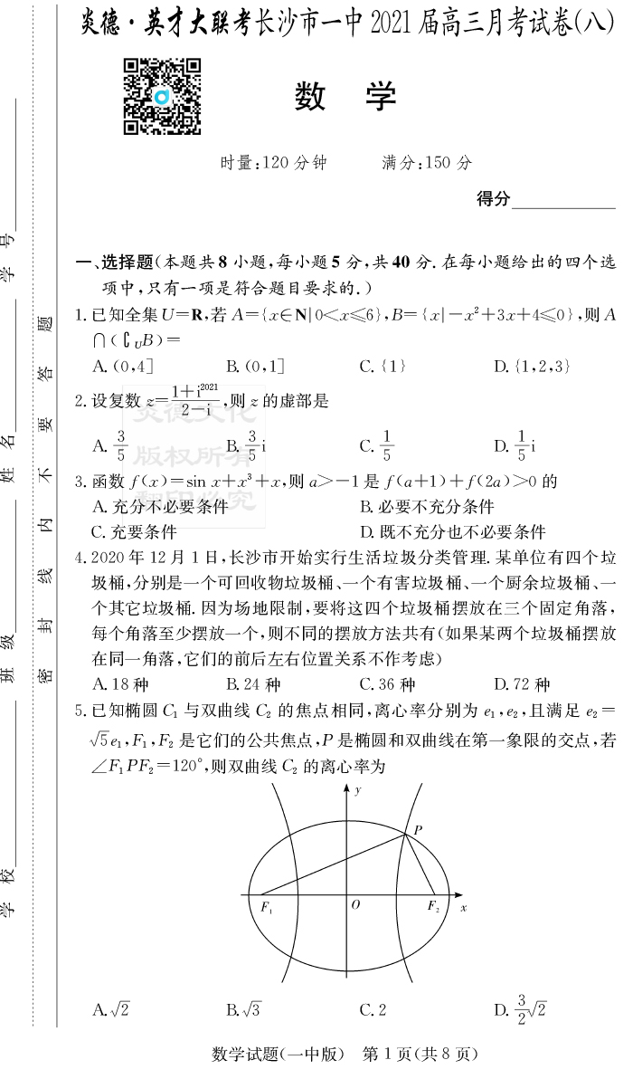 2025長郡中學新高考考前小題沖刺訓練·數(shù)學