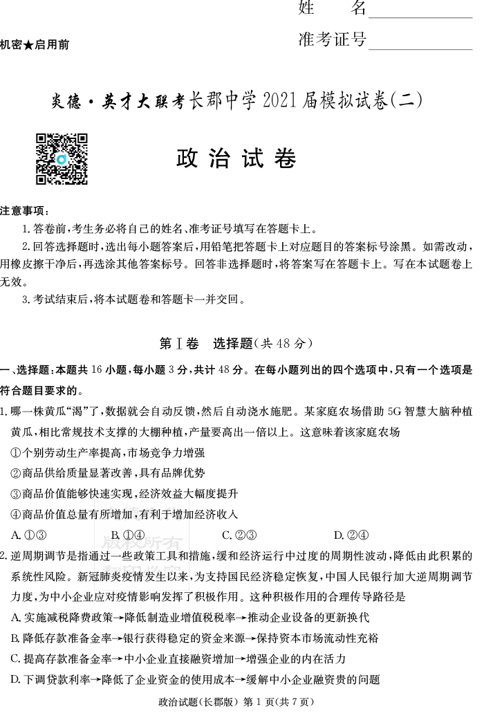 上一篇:【語文】炎德英才大聯(lián)考2021屆長(zhǎng)郡中學(xué)高三10次月考(模擬二)