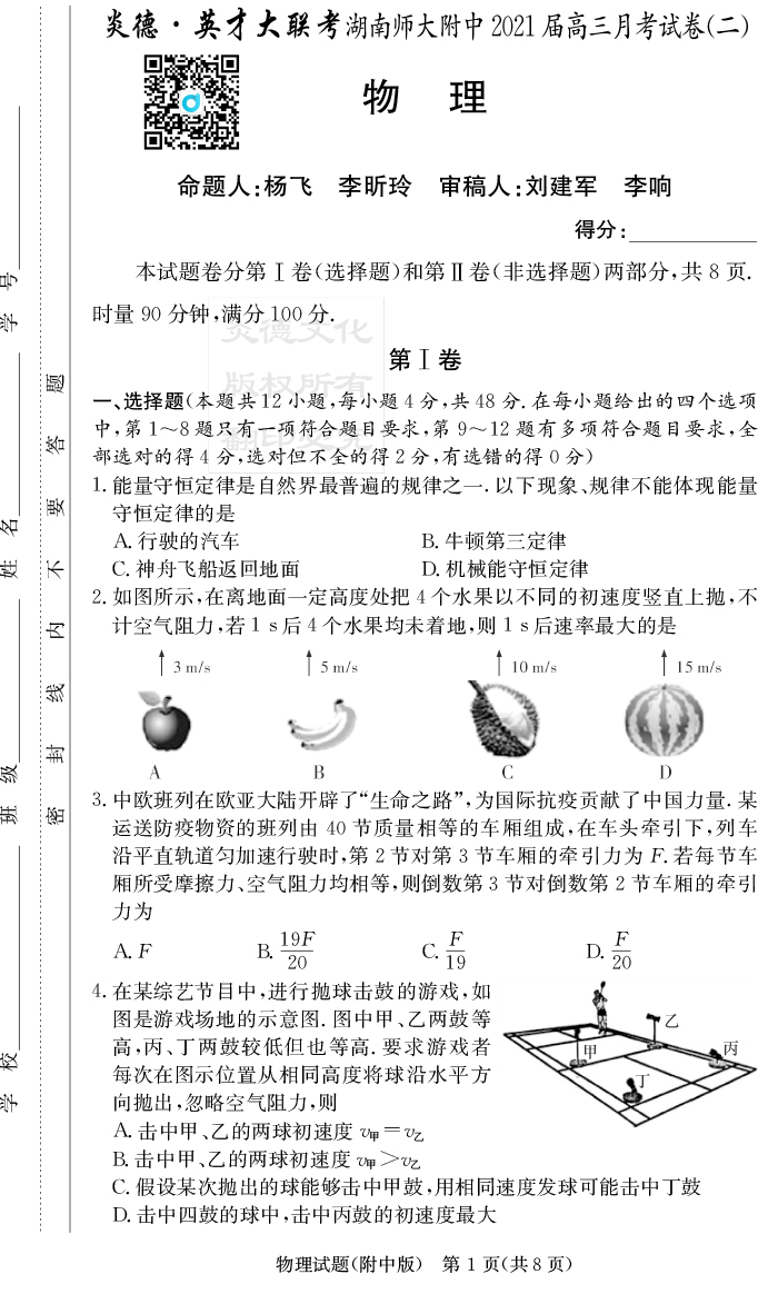 下一篇:【英語】炎德英才大聯(lián)考2021屆湖南師大附中高三2次月考