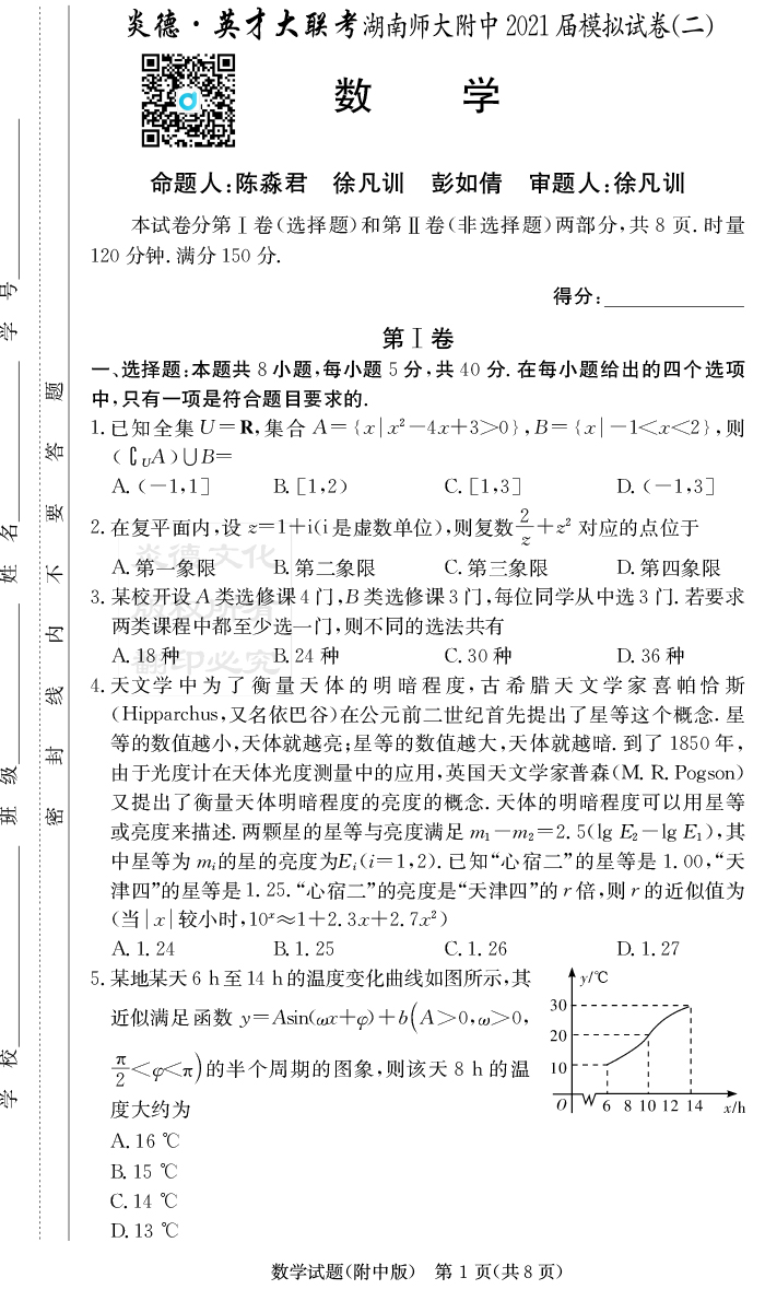 2025湖南師大附中新高考考前小題訓練·數(shù)學