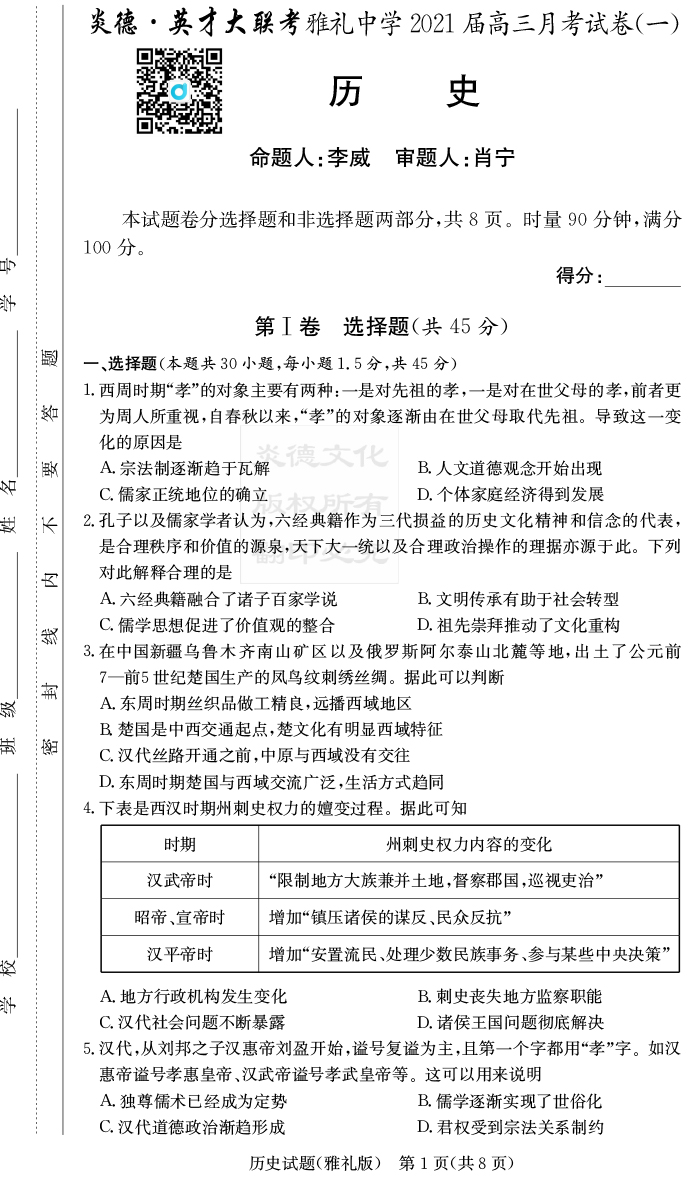 2025年長郡中學備考寶典(高考考前寶典)·歷史傾向