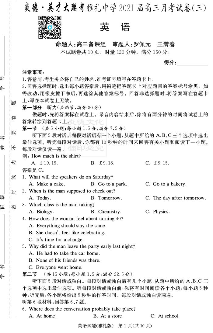 資源類別: | 名校月考 | |