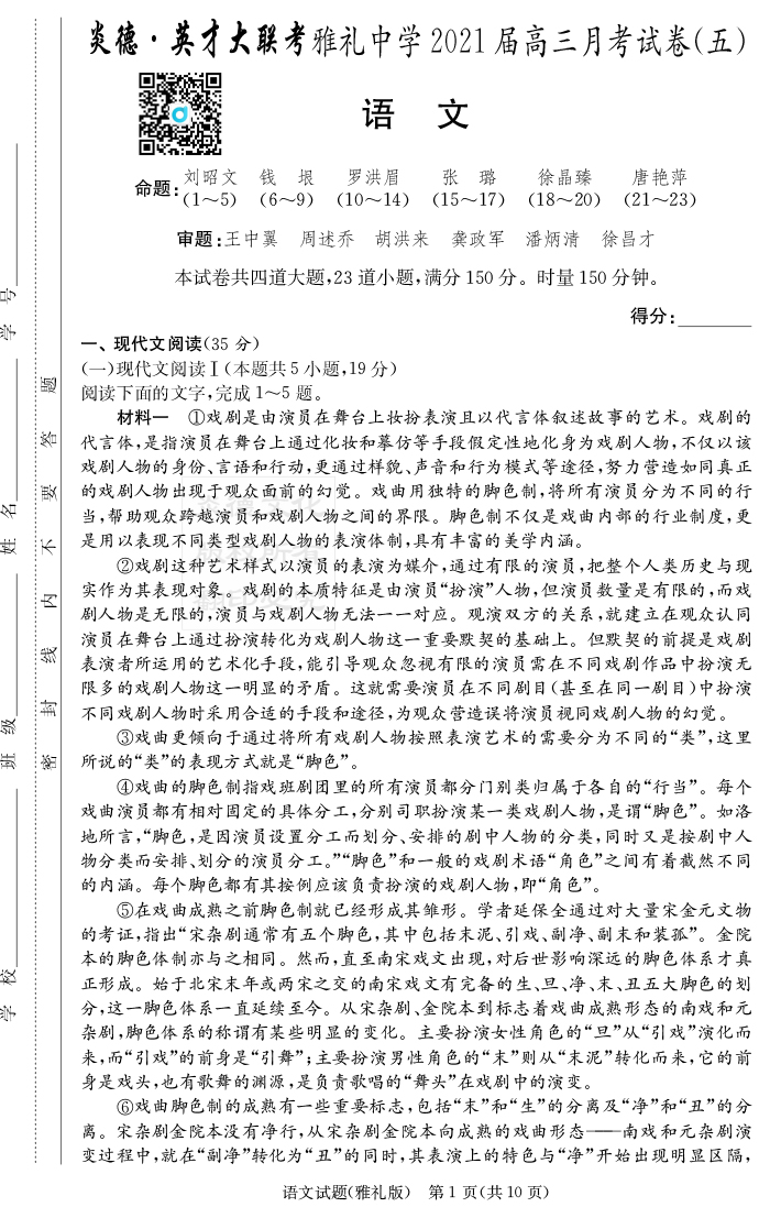 2025湖南師大附中新高考考前小題訓練·語文