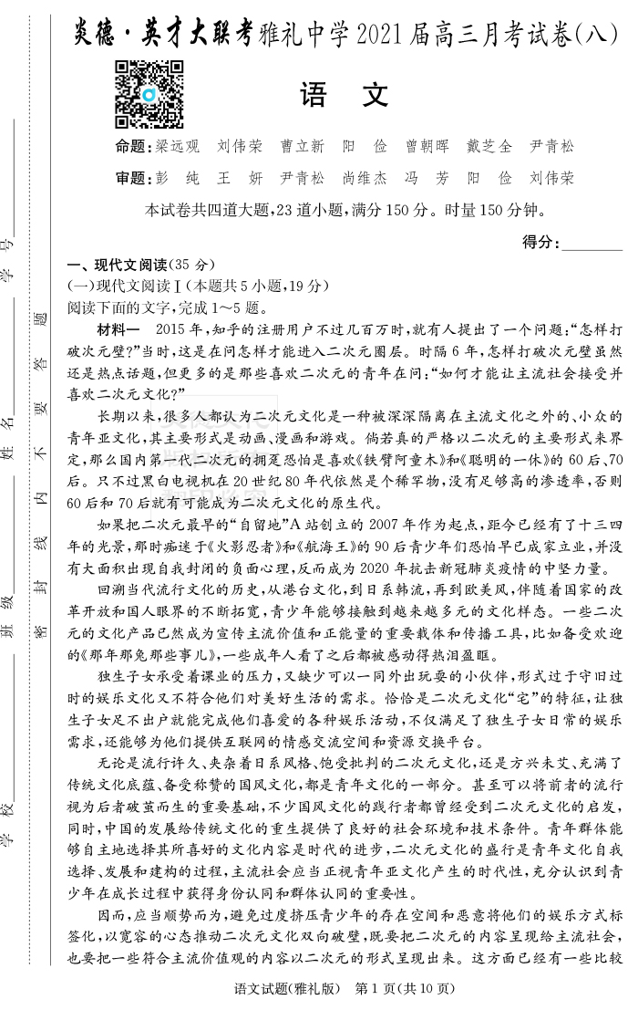 2025長郡中學新高考考前小題沖刺訓練·語文