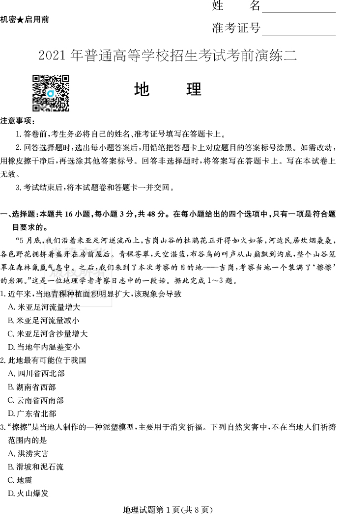 上一篇:【政治】2021年普通高等學校招生全國統(tǒng)一考試考前演練(一)