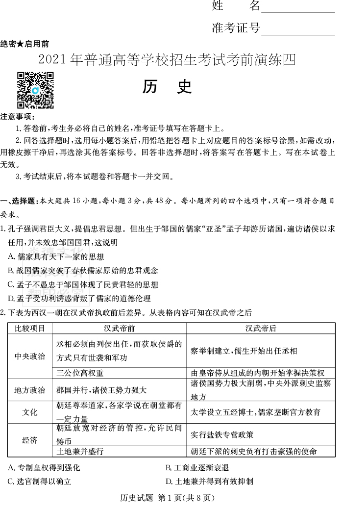 下一篇:【生物】2021年普通高等學校招生全國統(tǒng)一考試考前演練(四)
