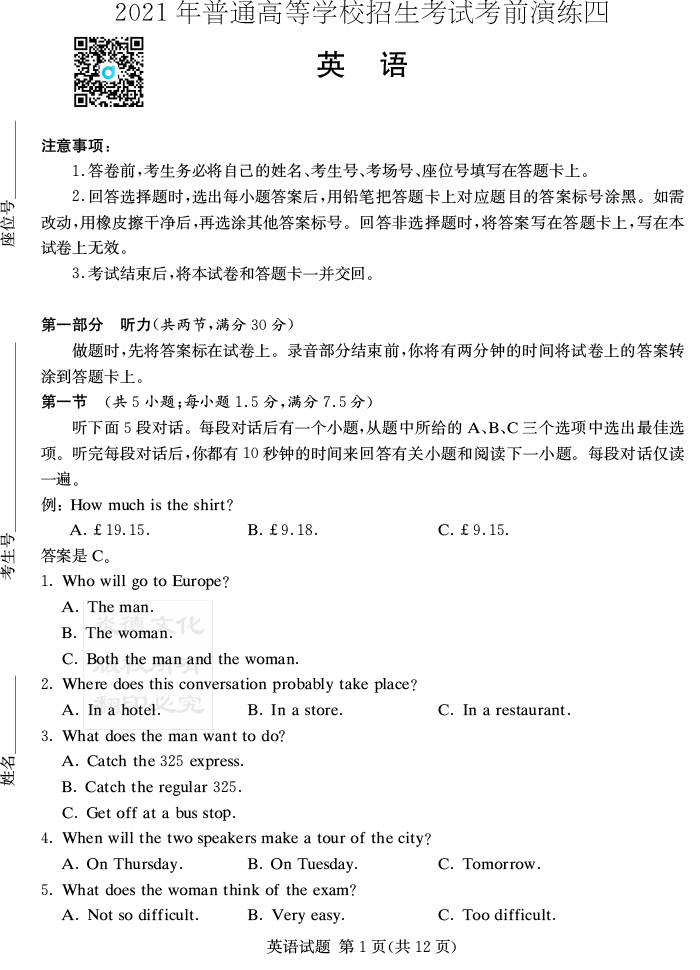 下一篇:【語文】2021年普通高等學校招生全國統(tǒng)一考試考前演練(四)
