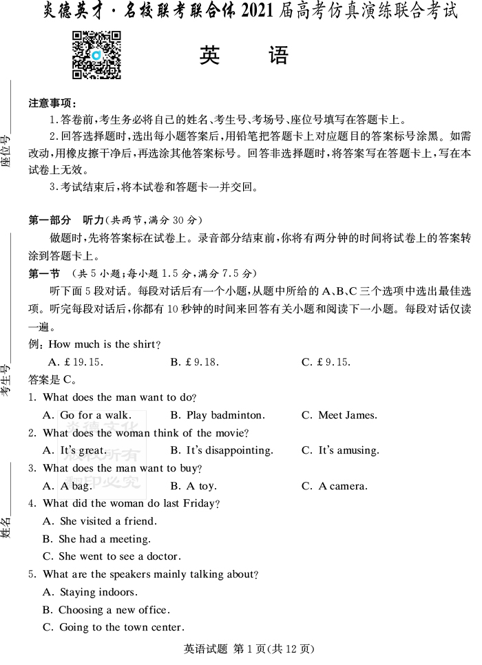 資源類別: | 名校月考 | |