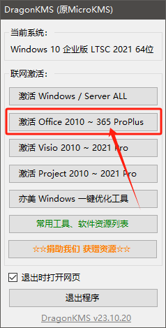 記得關(guān)閉殺毒軟件,啟動激活軟件。點擊激活 Microsoft Office 運行激活程序