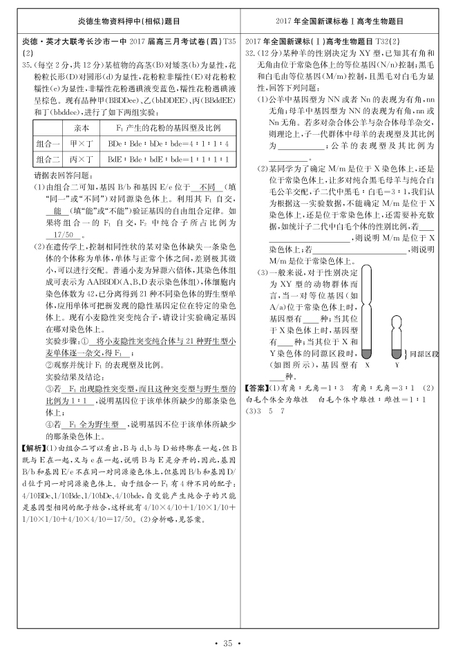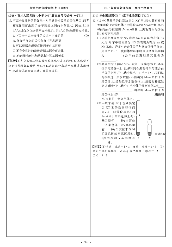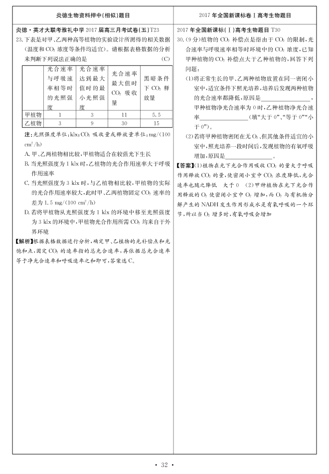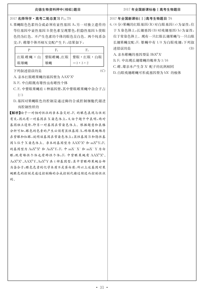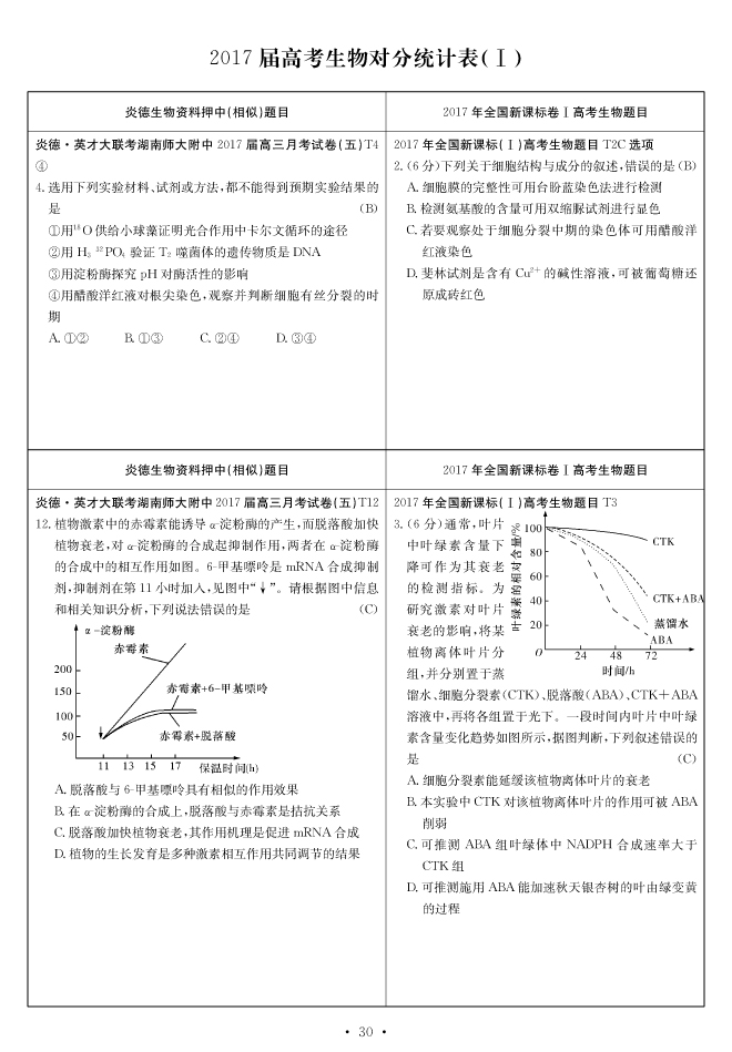 2017高考全國卷Ⅰ對(duì)分表-生物