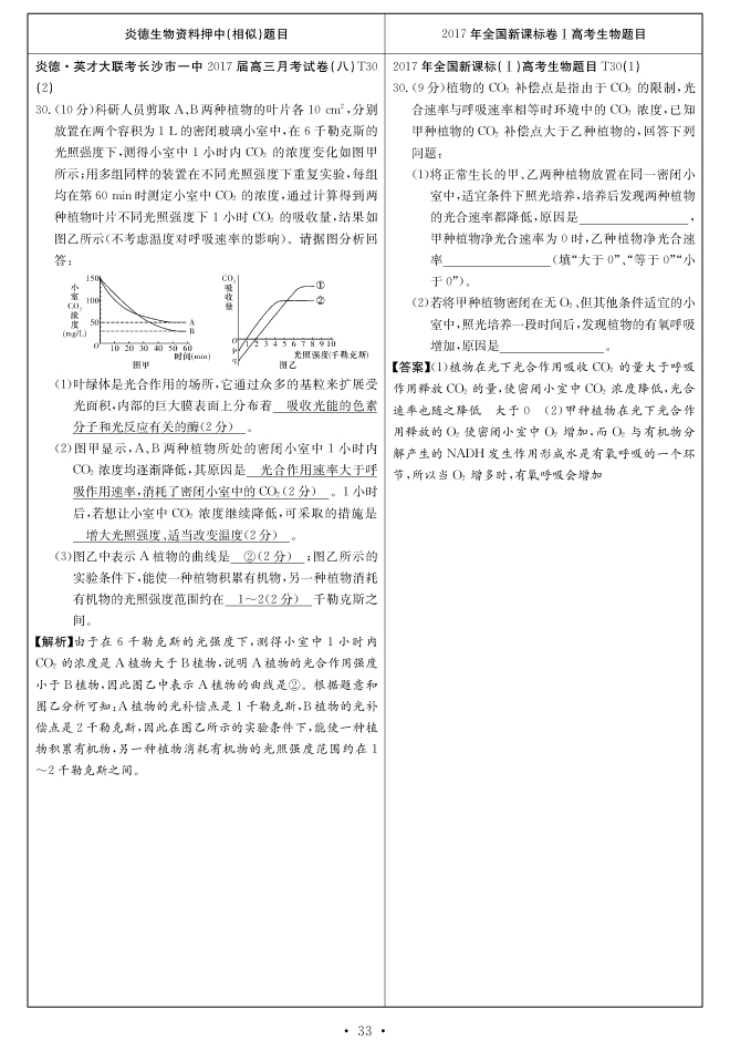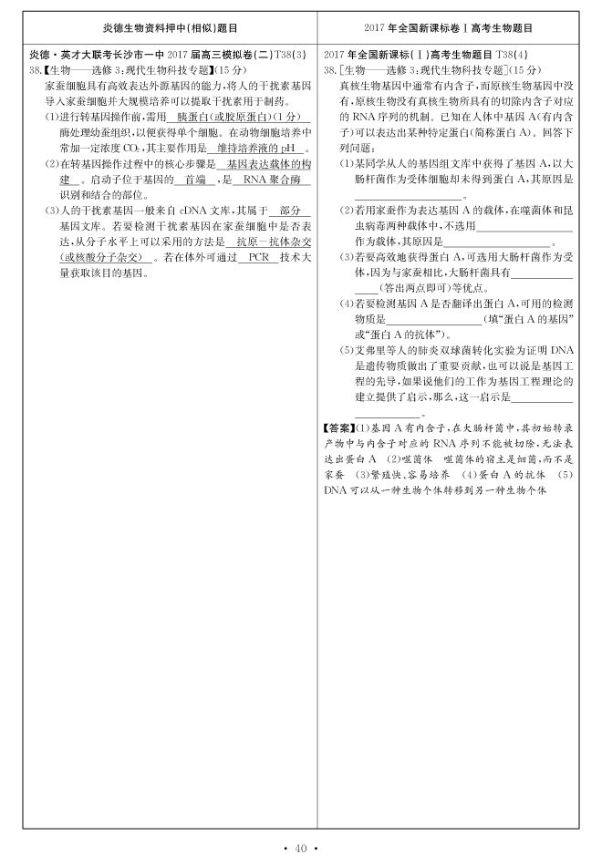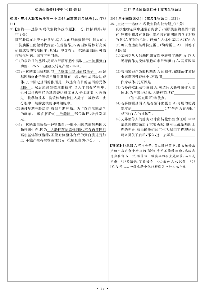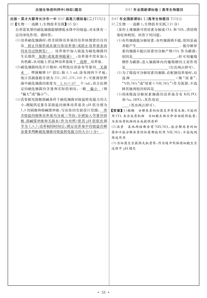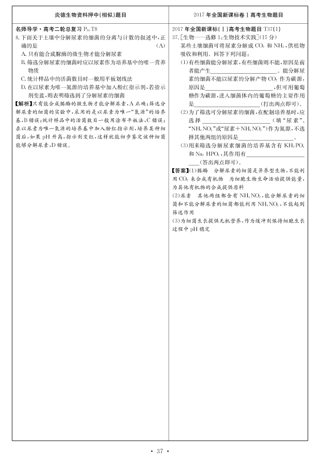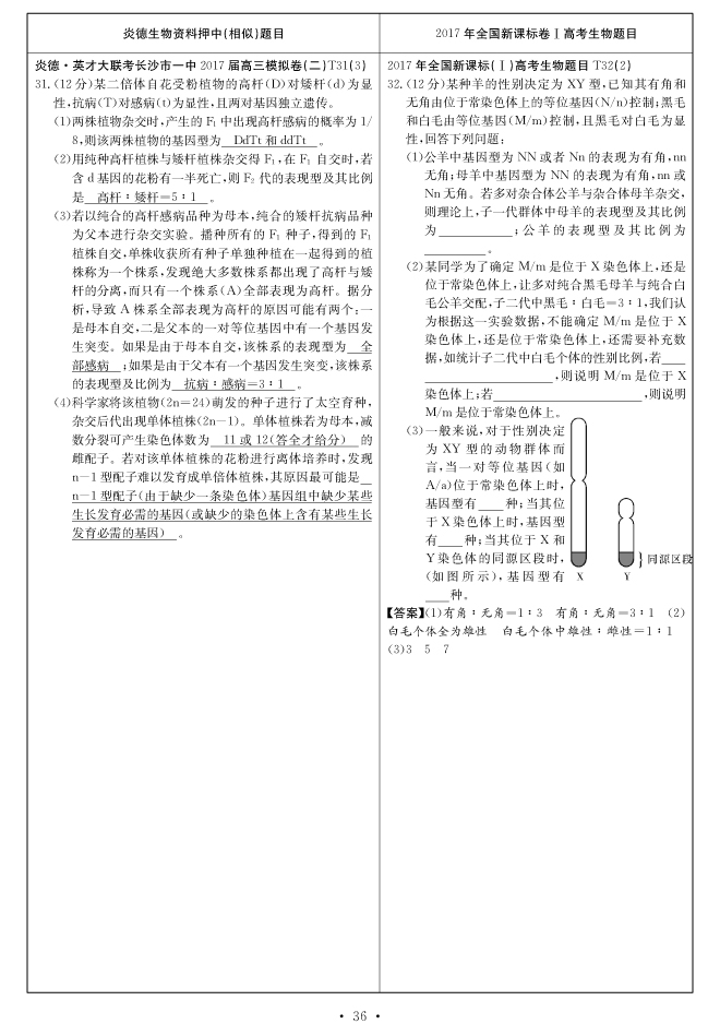 2017高考全國卷Ⅰ對(duì)分表-生物