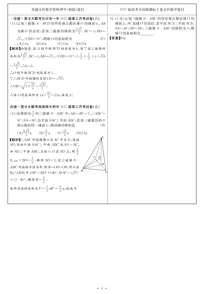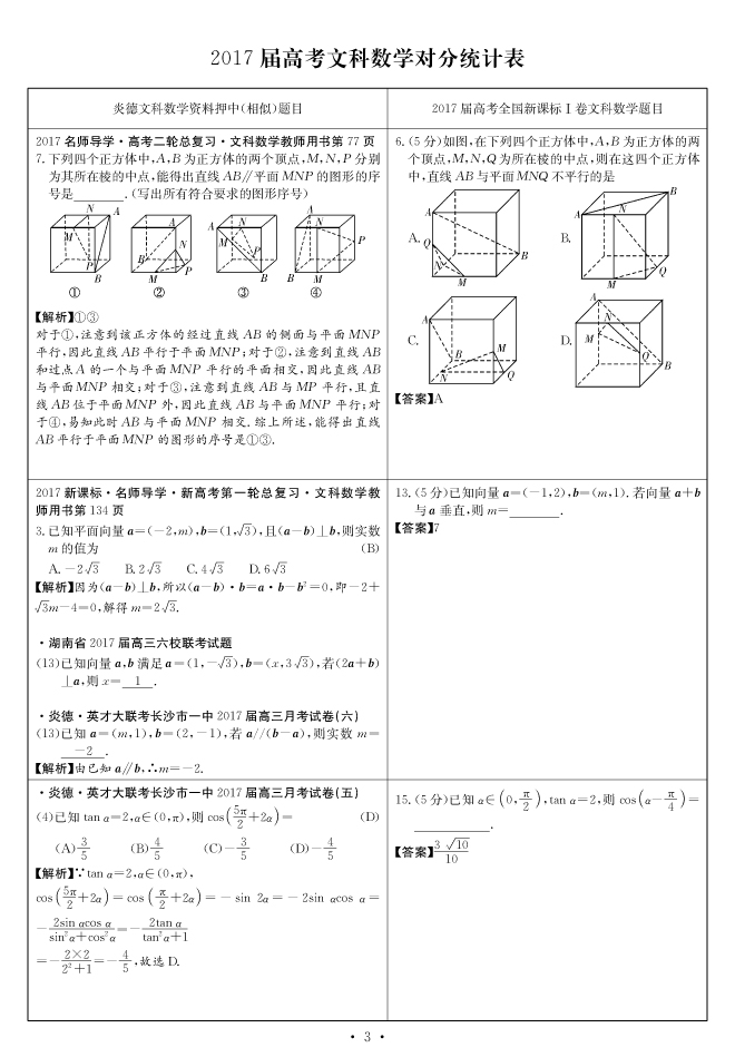 2017高考全國(guó)卷Ⅰ對(duì)分表-文數(shù)