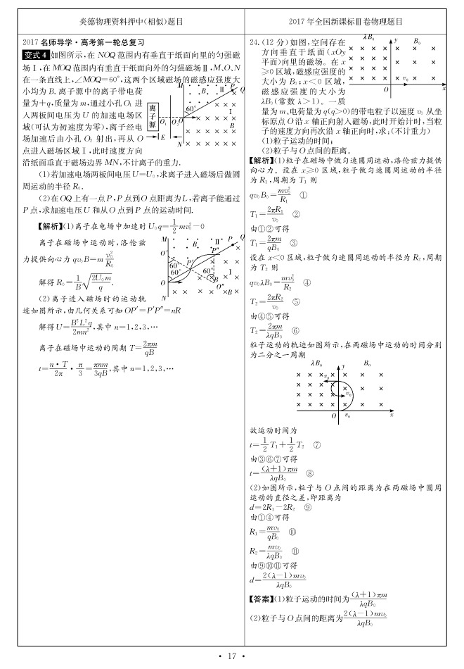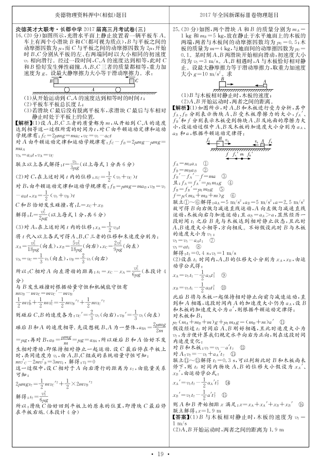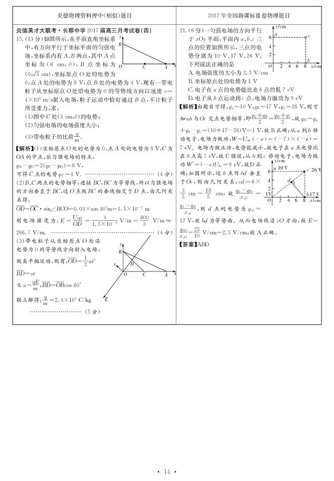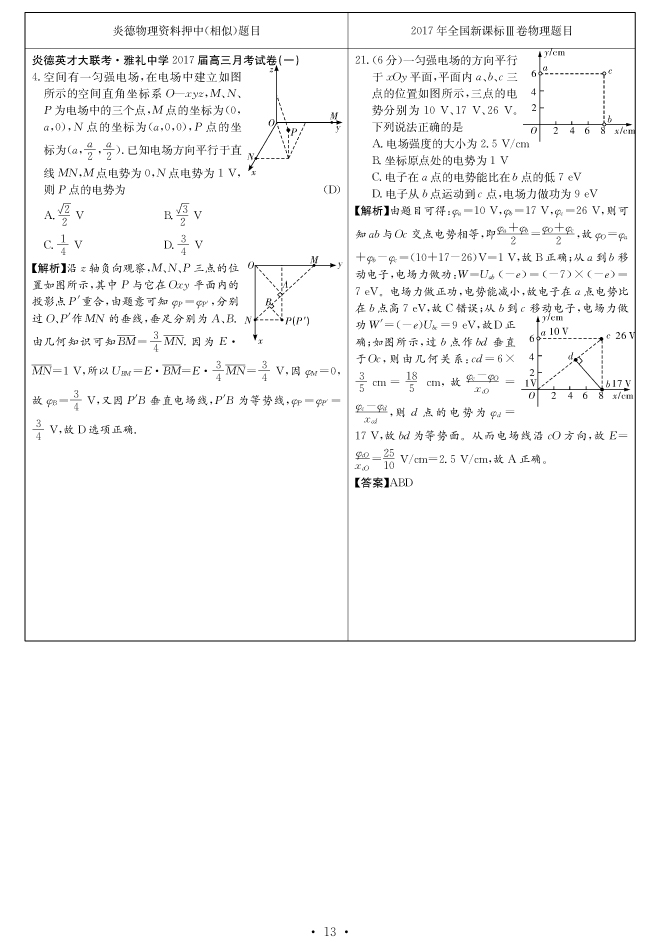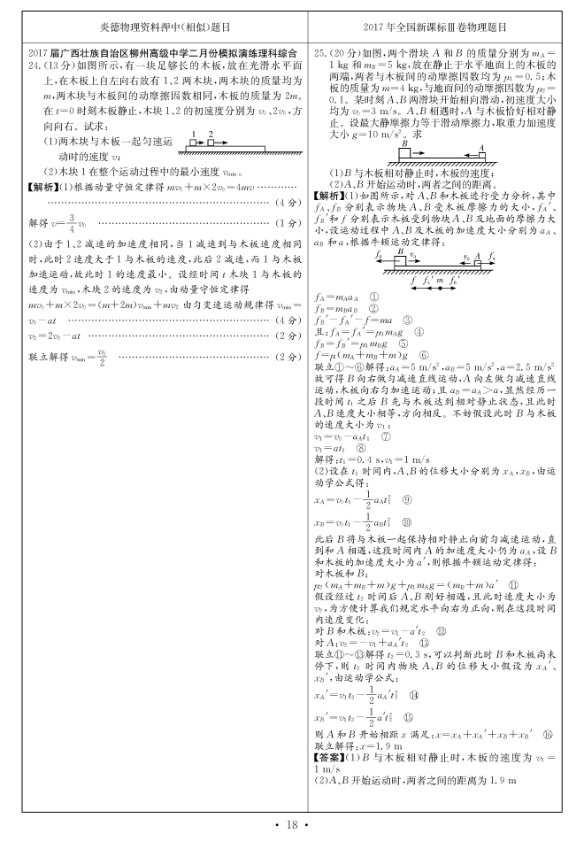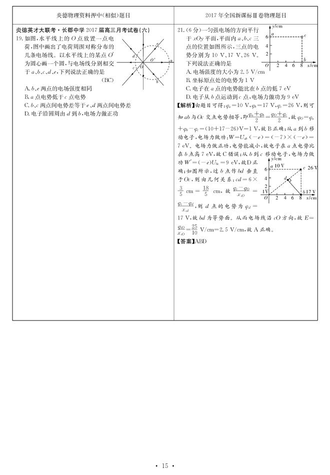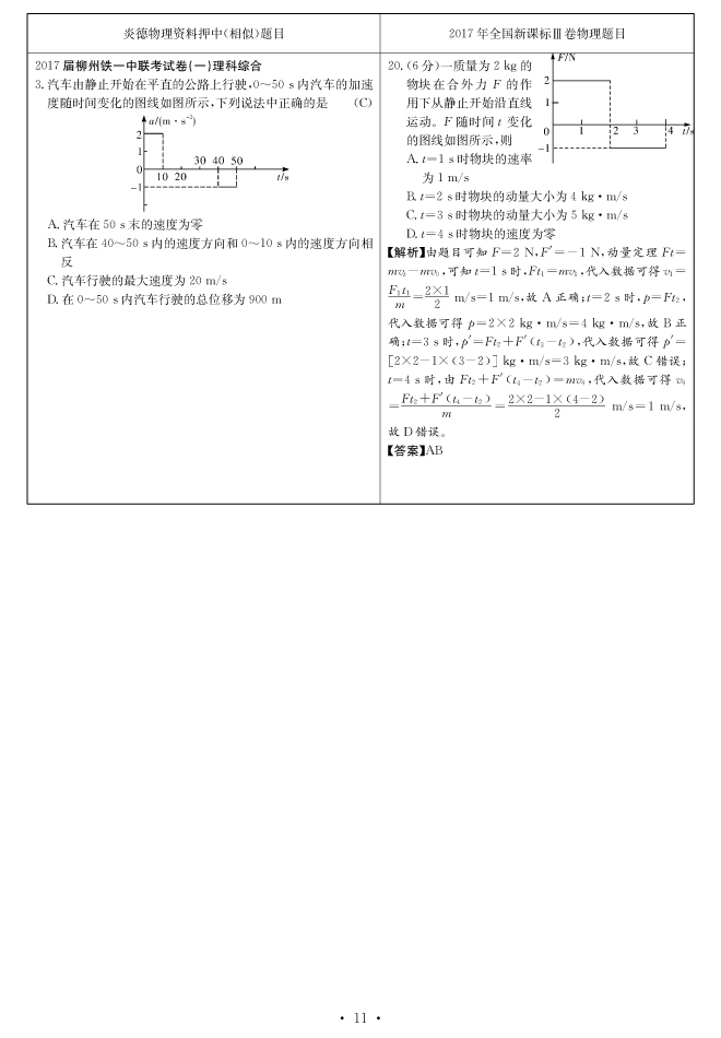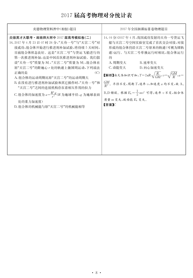 2017高考全國(guó)卷Ⅲ對(duì)分表-物理
