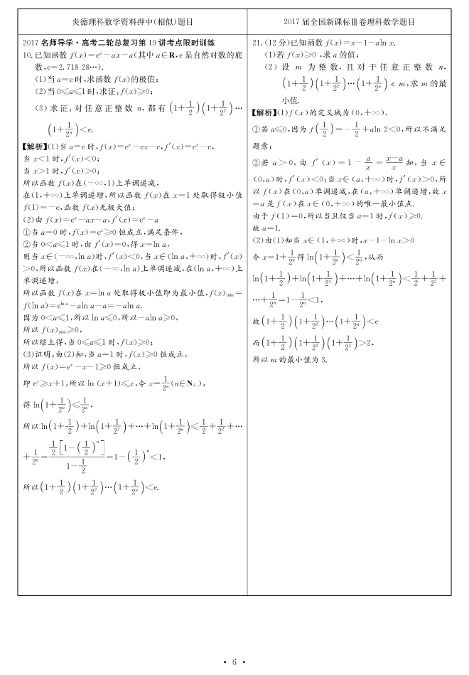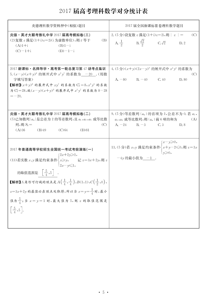 2017高考全國(guó)卷Ⅲ對(duì)分表-理數(shù)