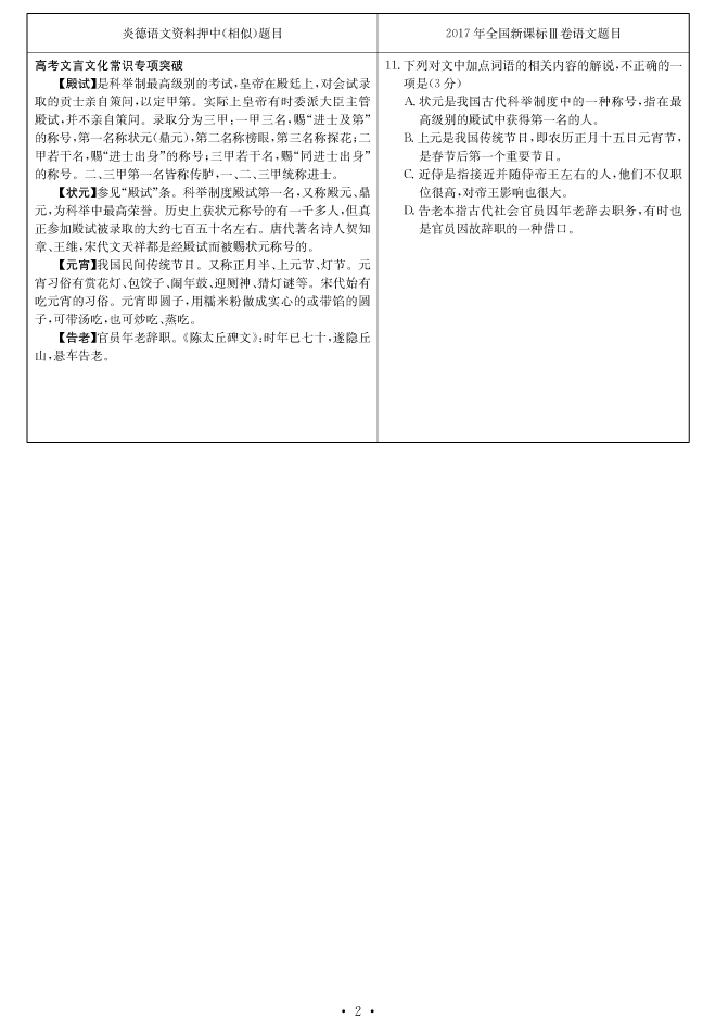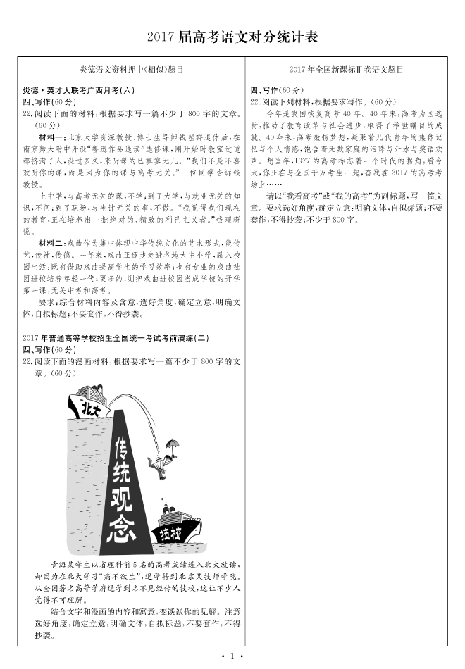 2017高考全國(guó)卷Ⅲ對(duì)分表-語文