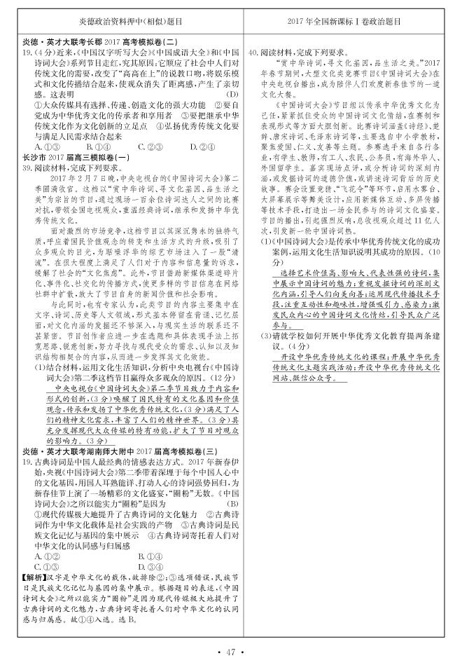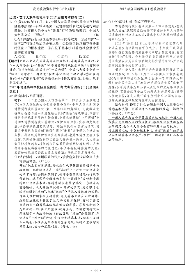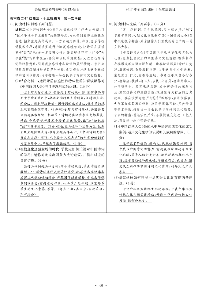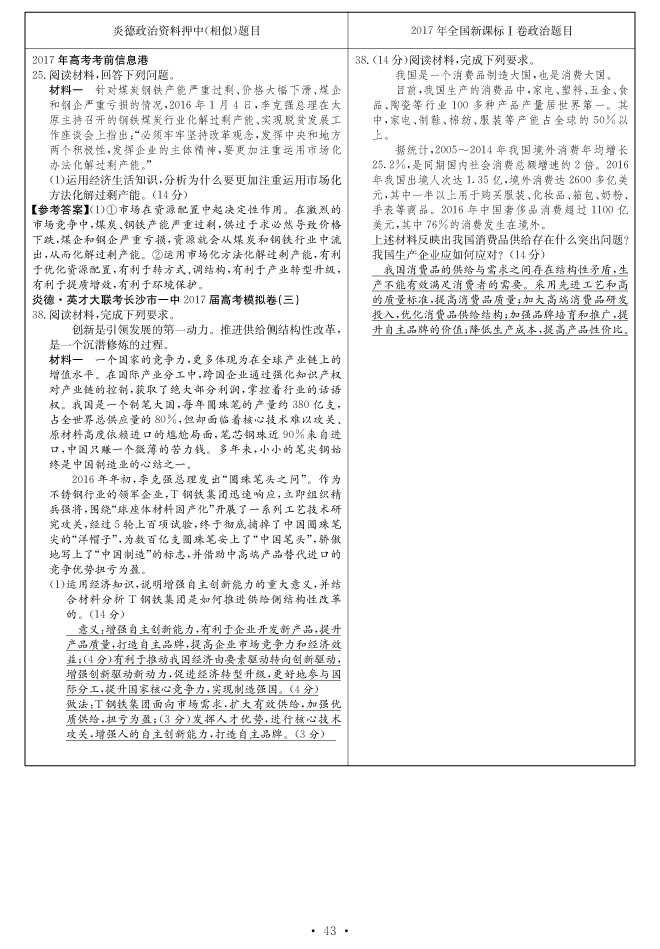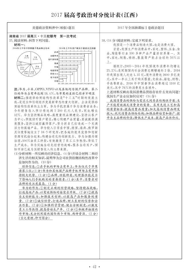 2017高考全國新課標(biāo)卷Ⅰ對分表-政治
