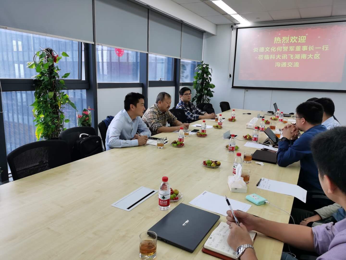 炎德文化何譽(yù)軍先生來(lái)到科大訊飛湖南分公司對(duì)雙方戰(zhàn)略合作一年來(lái)的工作和未來(lái)合作進(jìn)行了深入交流