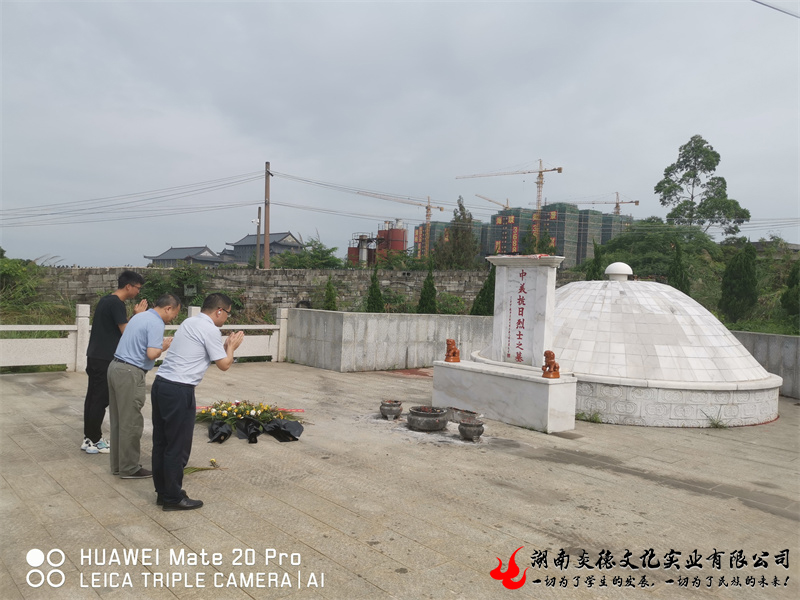 2021年5月5日,在廣西貴港出差的抗日戰(zhàn)爭(zhēng)紀(jì)念網(wǎng)總編、抗日戰(zhàn)爭(zhēng)圖書館館長(zhǎng)、長(zhǎng)沙抗戰(zhàn)文化研究會(huì)會(huì)長(zhǎng)、湖南炎德文化實(shí)業(yè)有限公司董事長(zhǎng)何譽(yù)軍、湖南炎德文化實(shí)業(yè)有限公司黨支部書記熊祖平、黨員何琳斌、譚志強(qiáng)等,到平南大乙?guī)X抗日烈士紀(jì)念園祭拜抗日英烈。