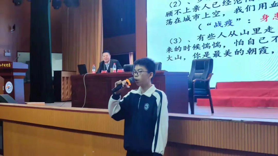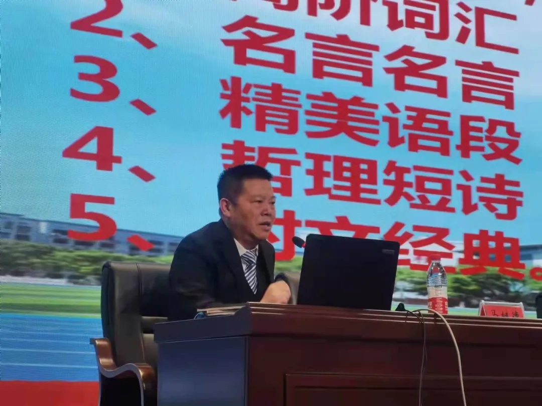 講座伊始,主持人劉滿(mǎn)和副校長(zhǎng)向全體師生介紹了本次講座的主講人馬繼德老師:馬繼德老師是長(zhǎng)郡中學(xué)特聘高中語(yǔ)文研究員,長(zhǎng)郡中學(xué)清北班培訓(xùn)專(zhuān)家,組大組長(zhǎng),省、市高級(jí)教師評(píng)審專(zhuān)家?guī)煸u(píng)委。1994年、1997年先后被市級(jí)、省級(jí)職稱(chēng)評(píng)審委員會(huì)破格晉升為中學(xué)一級(jí)、中學(xué)高級(jí)語(yǔ)文教師,是長(zhǎng)沙市2010年首批晉升的中學(xué)五級(jí)教師。曾獲創(chuàng)新杯及葉圣陶杯全國(guó)一等獎(jiǎng)優(yōu)秀指導(dǎo)教師、市級(jí)教學(xué)比武一等獎(jiǎng)、市級(jí)十佳教師、縣級(jí)勞動(dòng)模范等榮譽(yù),是全國(guó)及省中語(yǔ)會(huì)授予的作文教學(xué)優(yōu)秀教師。在省級(jí)、國(guó)家級(jí)報(bào)刊上公開(kāi)發(fā)表論文數(shù)十篇,有省級(jí)一等獎(jiǎng)結(jié)題課題,撰寫(xiě)高考輔導(dǎo)書(shū)籍二百萬(wàn)余字。近幾年在安徽、江西、湖南、廣東、廣西、湖北等省市縣完成高考備考講座百余場(chǎng),應(yīng)邀在懷化、婁底、郴州、岳陽(yáng)、常德、邵陽(yáng)、永州、湘西、長(zhǎng)沙、玉林、柳州、池州、荊州、赤壁、武漢、湖南師范大學(xué)等地完成市級(jí)、省級(jí)教師培訓(xùn)或高三復(fù)習(xí)研討會(huì)講座30余場(chǎng)。每一種卓越身份,每一項(xiàng)高光榮譽(yù),每一個(gè)沉甸甸的成就,都昭示著這場(chǎng)講座的含金量。在熱烈的掌聲中,身著正裝、神采飛揚(yáng)、風(fēng)度翩翩的馬老師開(kāi)始為時(shí)兩個(gè)小時(shí)的講座。