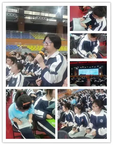繡口錦心的馬老師,親和有力,舒緩儒雅。講座既有的理論指導(dǎo),又有真誠(chéng)的經(jīng)驗(yàn)介紹。從大處看,思路清晰,體系圓整;自細(xì)節(jié)觀,字字金玉、句句箴言。美文頻頻援引,朗讀之聲瑯瑯;師生互動(dòng)環(huán)節(jié),氣氛活躍融洽。馬老師給主動(dòng)展示的學(xué)生送出獎(jiǎng)品小冊(cè)子,更是引來(lái)嘖嘖羨慕。全體師生聽(tīng)得津津有味,在筆記本上認(rèn)真詳細(xì)做筆記。因?yàn)?,我們真真切切感到,馬老師“輕描淡寫(xiě)”中分享的每一種提分招數(shù)、每一種素材積累途徑,我們經(jīng)過(guò)長(zhǎng)久踐行甚至走過(guò)彎路方能認(rèn)知,在此刻真正感到“于我心有戚戚焉”。對(duì)于“干貨”,我們的態(tài)度是,先占有,再用時(shí)間的清水慢慢泡開(kāi),變成豐美盈潤(rùn)的寫(xiě)作原材,烹飪,汲取,滋養(yǎng)我們的文筆。