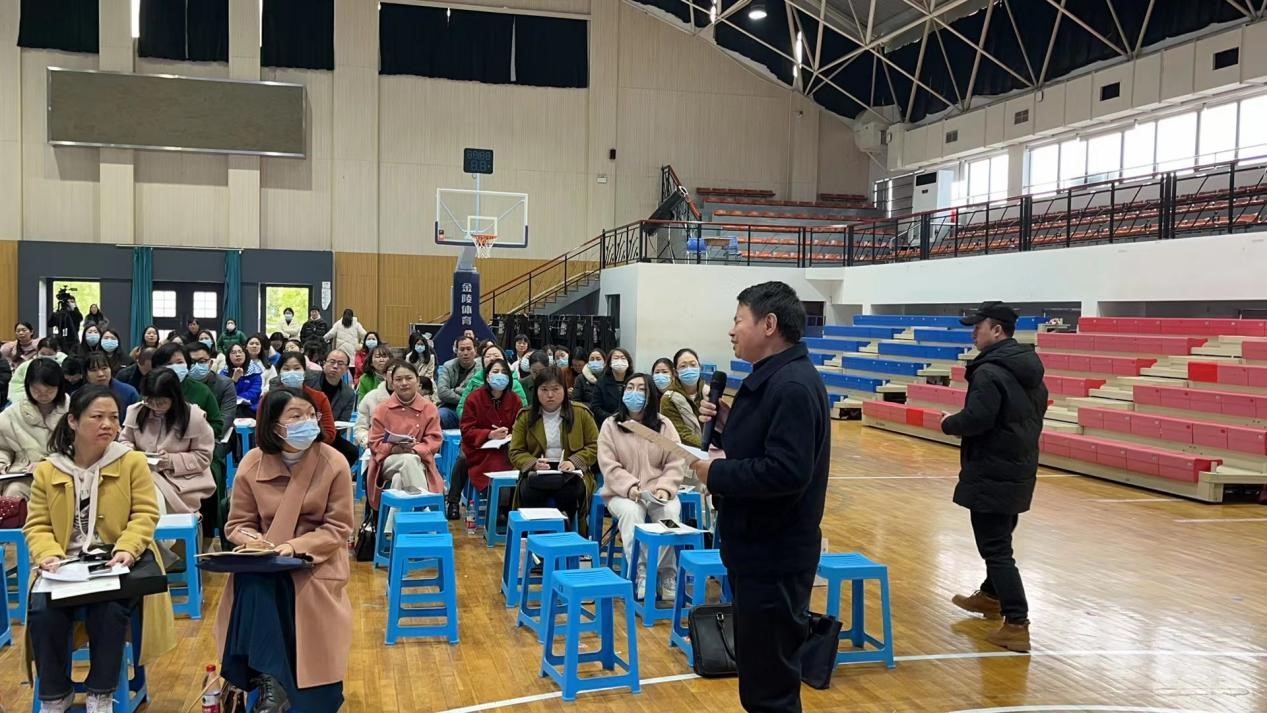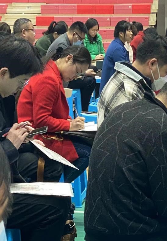 長沙市六中體育館內(nèi),郭偉、李吉英、張旭娟三位老師對英語學(xué)科進(jìn)行精準(zhǔn)講解,對2023屆高考英語命題方向作出指引。