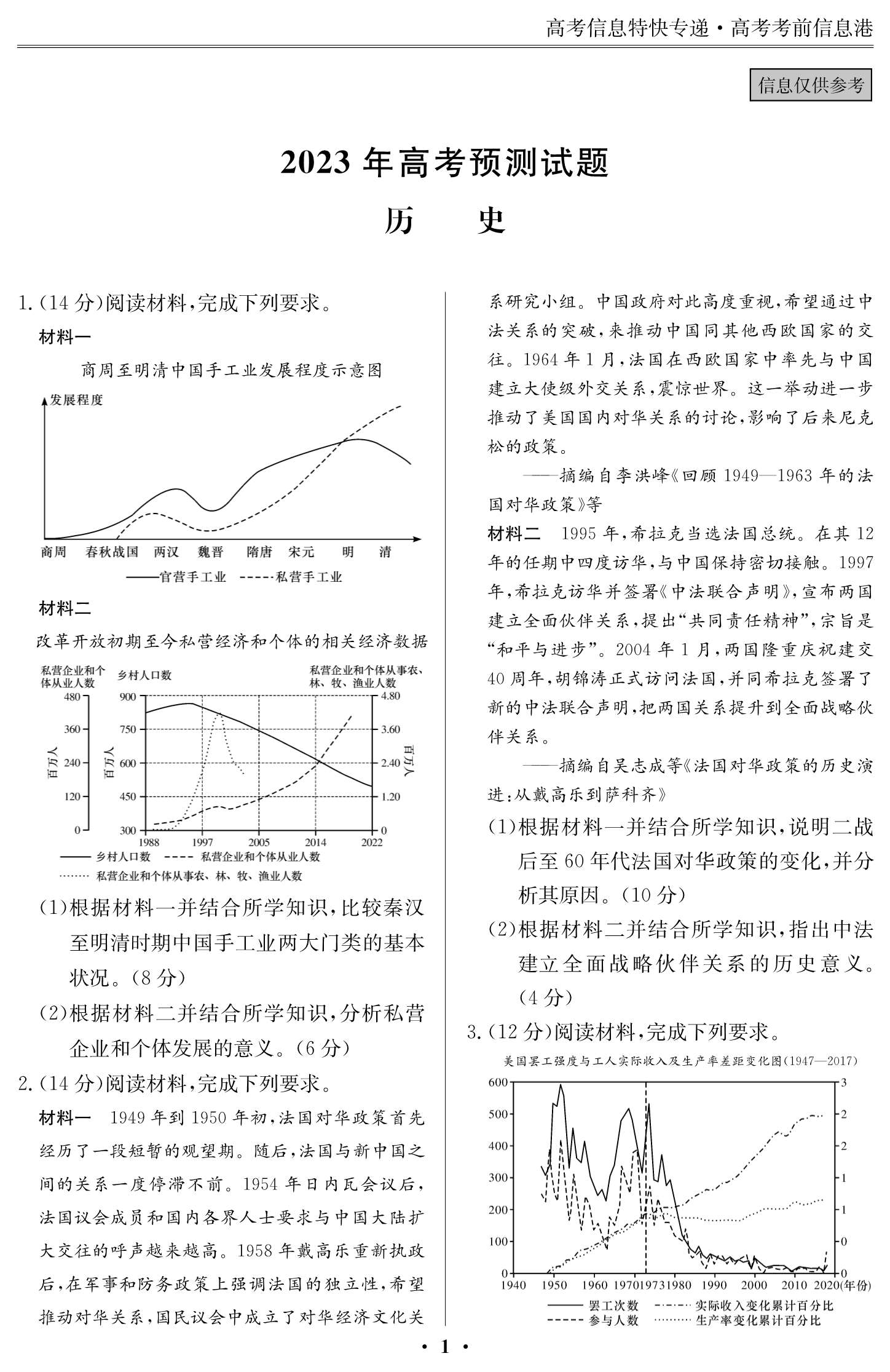 2023年高考考前預(yù)測信息補(bǔ)充內(nèi)容(一)5月30日
