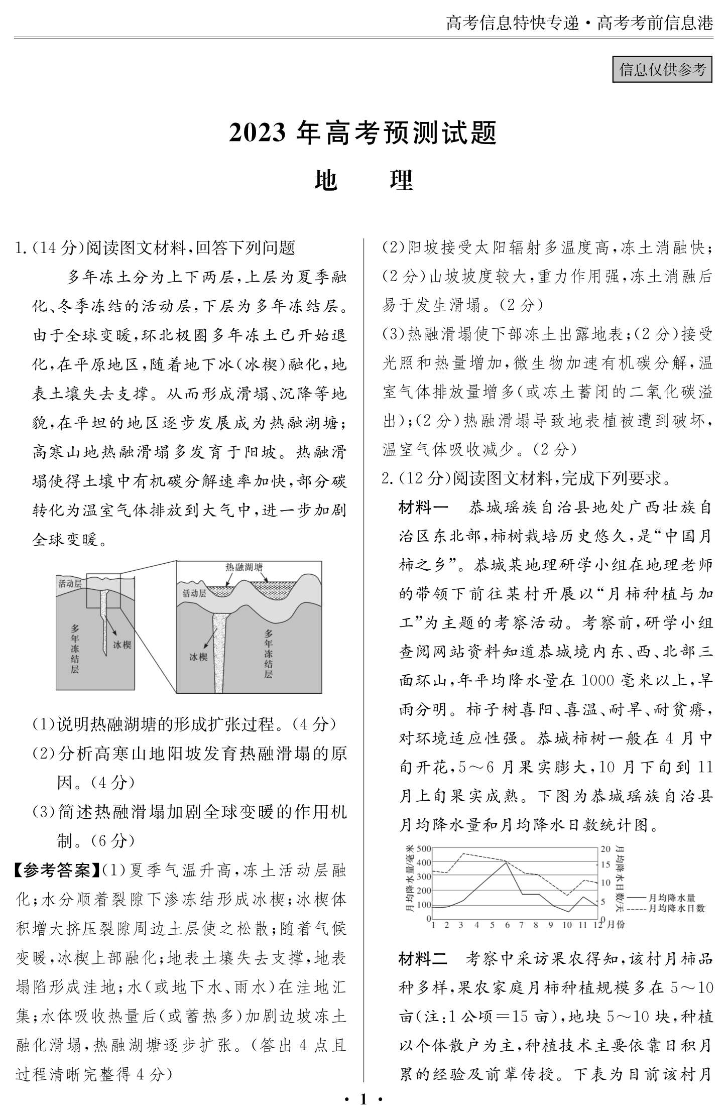 2023年高考考前預(yù)測信息補(bǔ)充內(nèi)容(一)5月30日