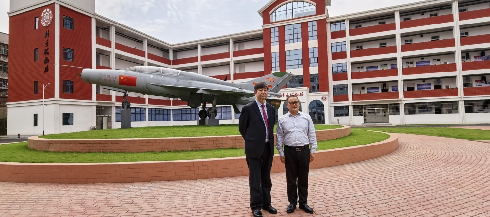 講座結(jié)束后,湘潭縣第一中學(xué)黨委書(shū)記齊學(xué)軍、黨委副書(shū)記、校長(zhǎng)唐樂(lè)軍、肖榮、郭良玉等熱情接待了姜春良將軍一行,陪同大家參觀了校園和海航樓。湘潭縣第一中學(xué)創(chuàng)辦于1946年,校園占地16.23萬(wàn)平方米,建筑面積12.69萬(wàn)平方米。學(xué)校秉承“剛勁、務(wù)實(shí)、敢為人先”的湖湘精神,銳意進(jìn)取,積淀了深厚的辦學(xué)底蘊(yùn);擁有湘潭大學(xué)、湖南科技大學(xué)、湖南工程學(xué)院等全國(guó)重點(diǎn)高校豐富的教學(xué)科研資源。學(xué)校取得了豐碩的辦學(xué)成果:學(xué)校是湖南省示范性普通高級(jí)中學(xué)、湖南省海軍青少年航空學(xué)校、全國(guó)文明校園、全國(guó)五四紅旗團(tuán)委、全國(guó)青少年校園足球特色學(xué)校、全國(guó)青少年校園籃球特色學(xué)校、全國(guó)國(guó)防教育特色學(xué)校、中國(guó)百?gòu)?qiáng)中學(xué)、湖南省首屆魅力校園,也是全省同時(shí)榮膺清華、北大直薦學(xué)生資質(zhì)的六所高級(jí)中學(xué)之一,二十多年來(lái)持續(xù)領(lǐng)跑湘潭教育。
