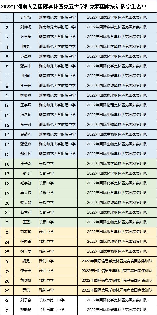 長沙晚報(bào)掌上長沙3月18日訊(全媒體記者 舒文)今日,中國科協(xié)青少年科技中心發(fā)布2022年國際奧林匹克五大學(xué)科(數(shù)學(xué)、物理、化學(xué)、生物以及信息學(xué))競賽國家集訓(xùn)隊(duì)名單,全國共有260名學(xué)生入選。湖南作為競賽強(qiáng)省今年取得了不俗的成績,共有31名學(xué)生入選,總?cè)藬?shù)居全國第二。