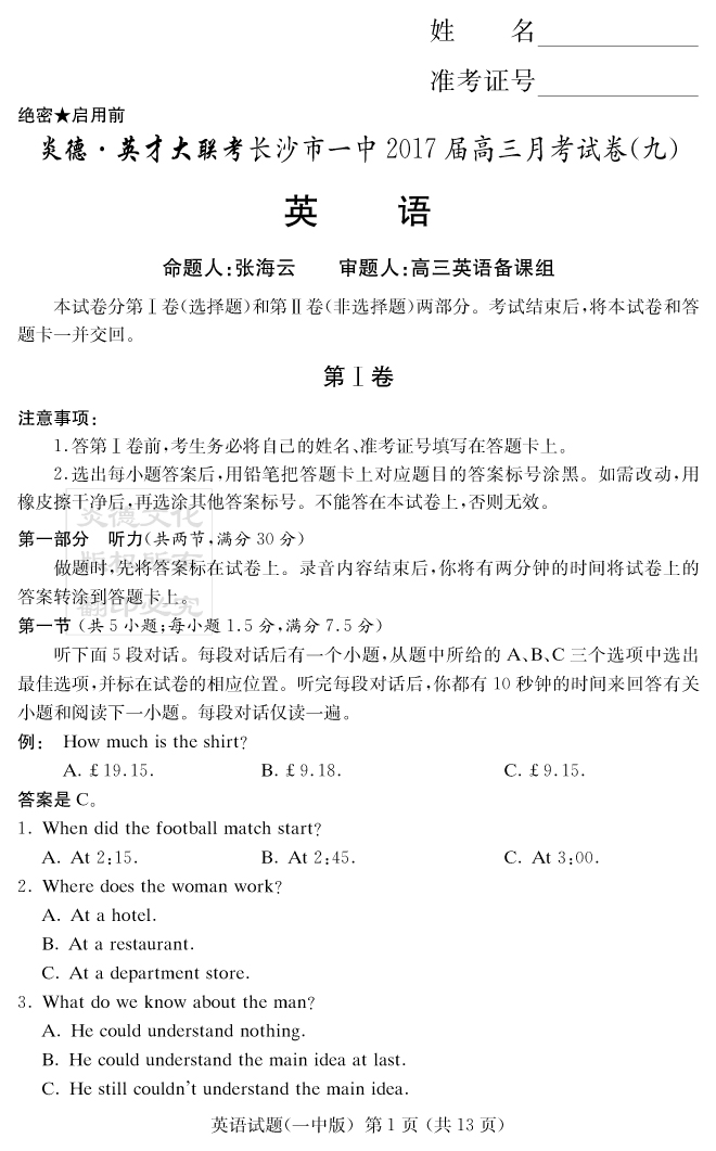 下一篇:【語文】炎德英才大聯(lián)考2017長沙一中高三9次月考
